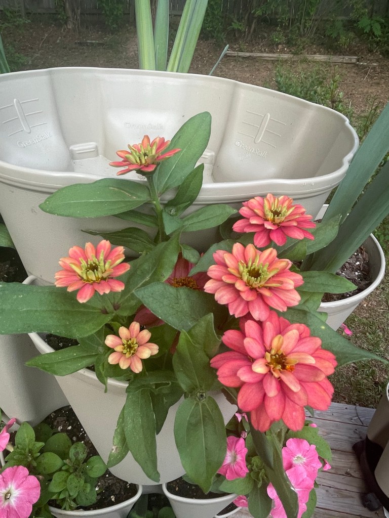 Got some flowers in my Greenstalk this week. I really want to set up a timer drip watering system for my pots. I don’t know where to start even. I’ve watched one YouTube video on a flower bed one.