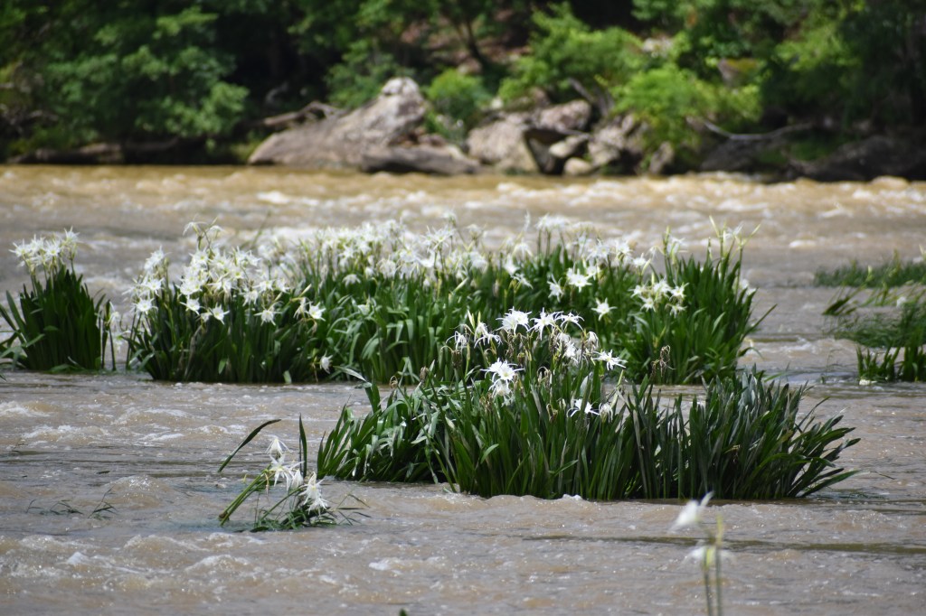 My brother and I went on another Cahaba Lily adventure but the water was too high/ I was too chicken to try to cross and get closer to the flowers.