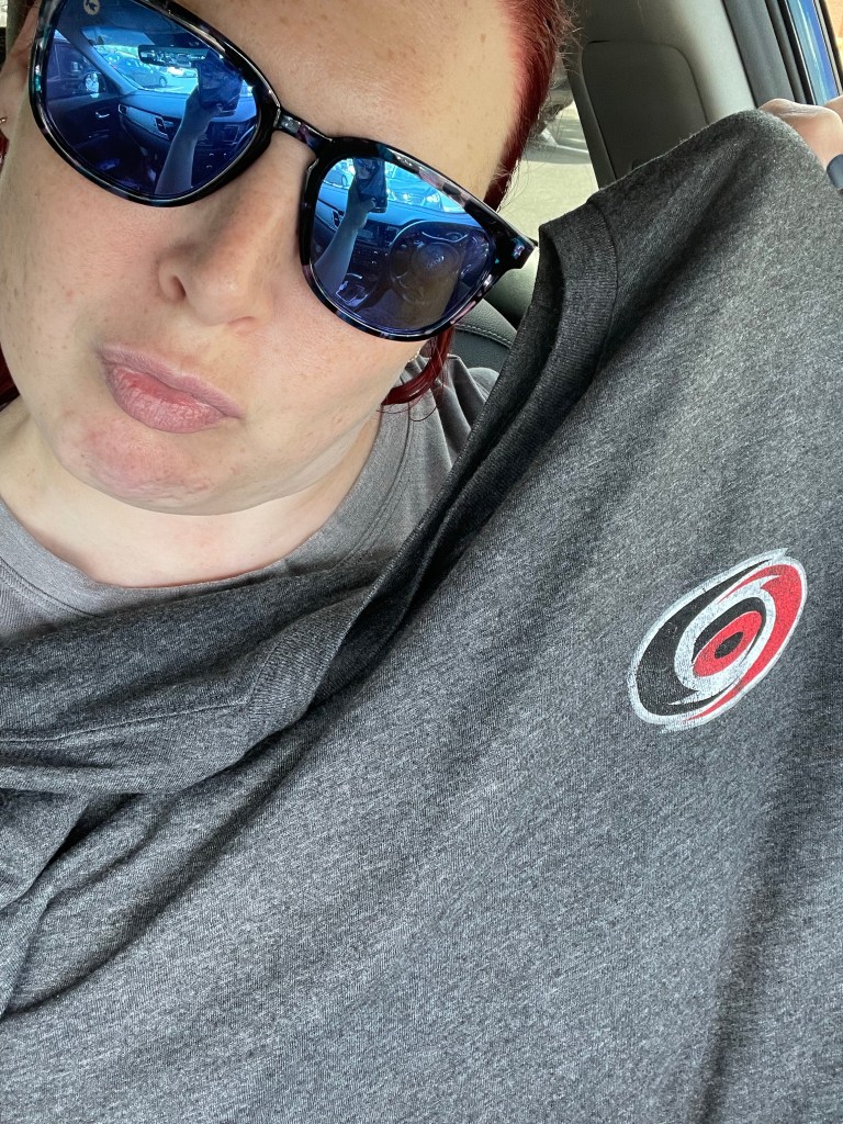 RyRy is a hockey fan (originally Chicago). We have recently adopted a second team, the Canes. I of course bought Hartford Whaler gear because duh, whales. (The Whalers became the Canes.) I drove 10 hours to get this shirt for RyRy. Just kidding I drove 11 hours to see my family and picked up the shirt on the way.