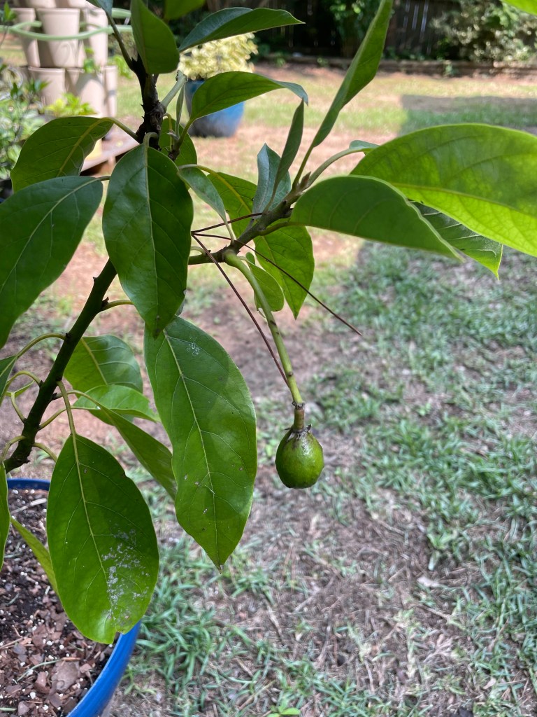 My little garden survived my absence thanks to some FaceTime instructions to RyRy and Teddy and lots of rain. We only had one casualty in a front porch pot. We are down from three avocados to one. Even if I don’t get to eat one it’s been super fun to watch.