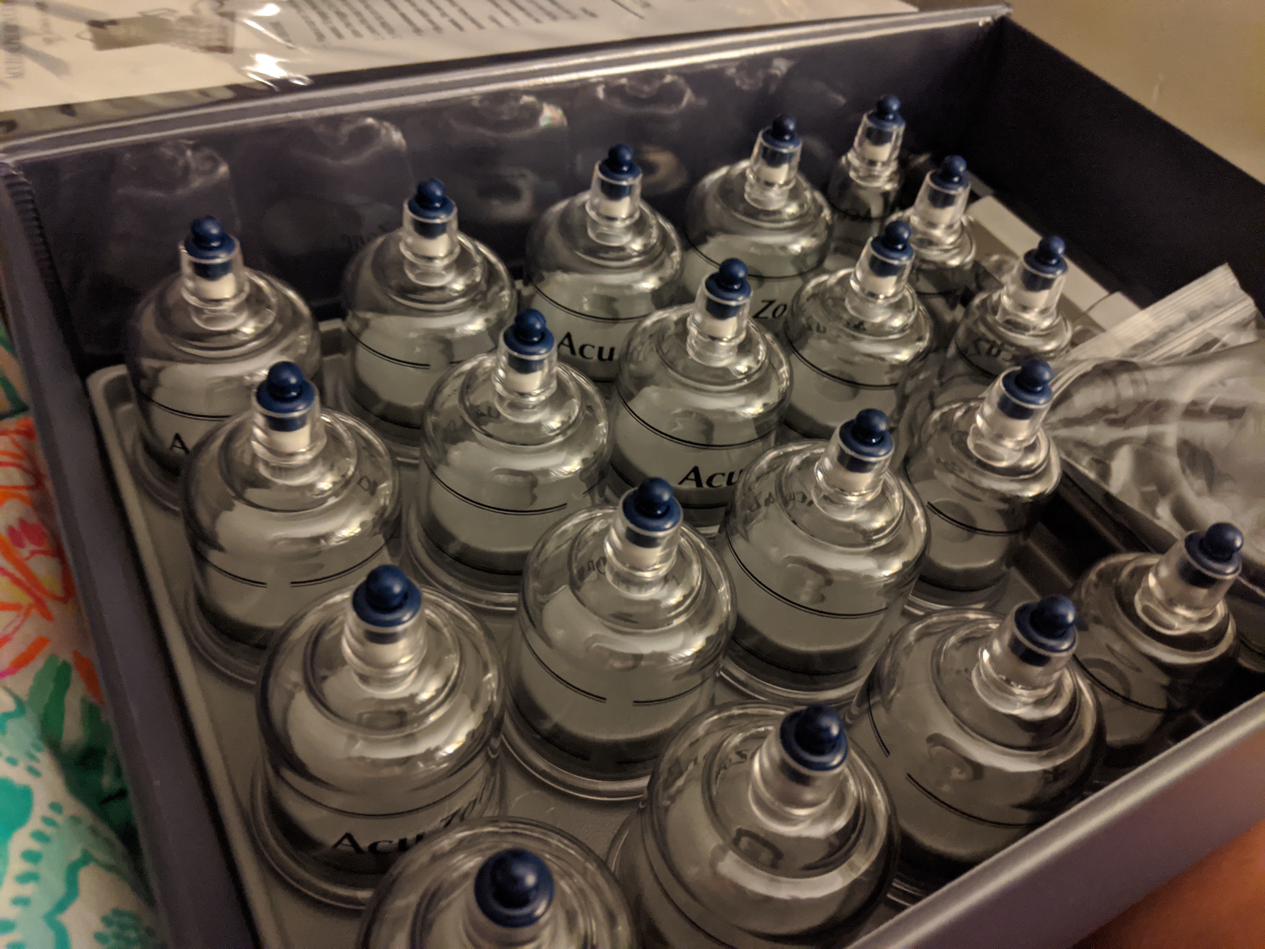 Trying some cupping for my tight muscles. We will see. I figured if Michael Phelps did it then surely it worked. Ha! Bought this set off Amazon. It comes with an extension tube and it is easy to use on yourself.