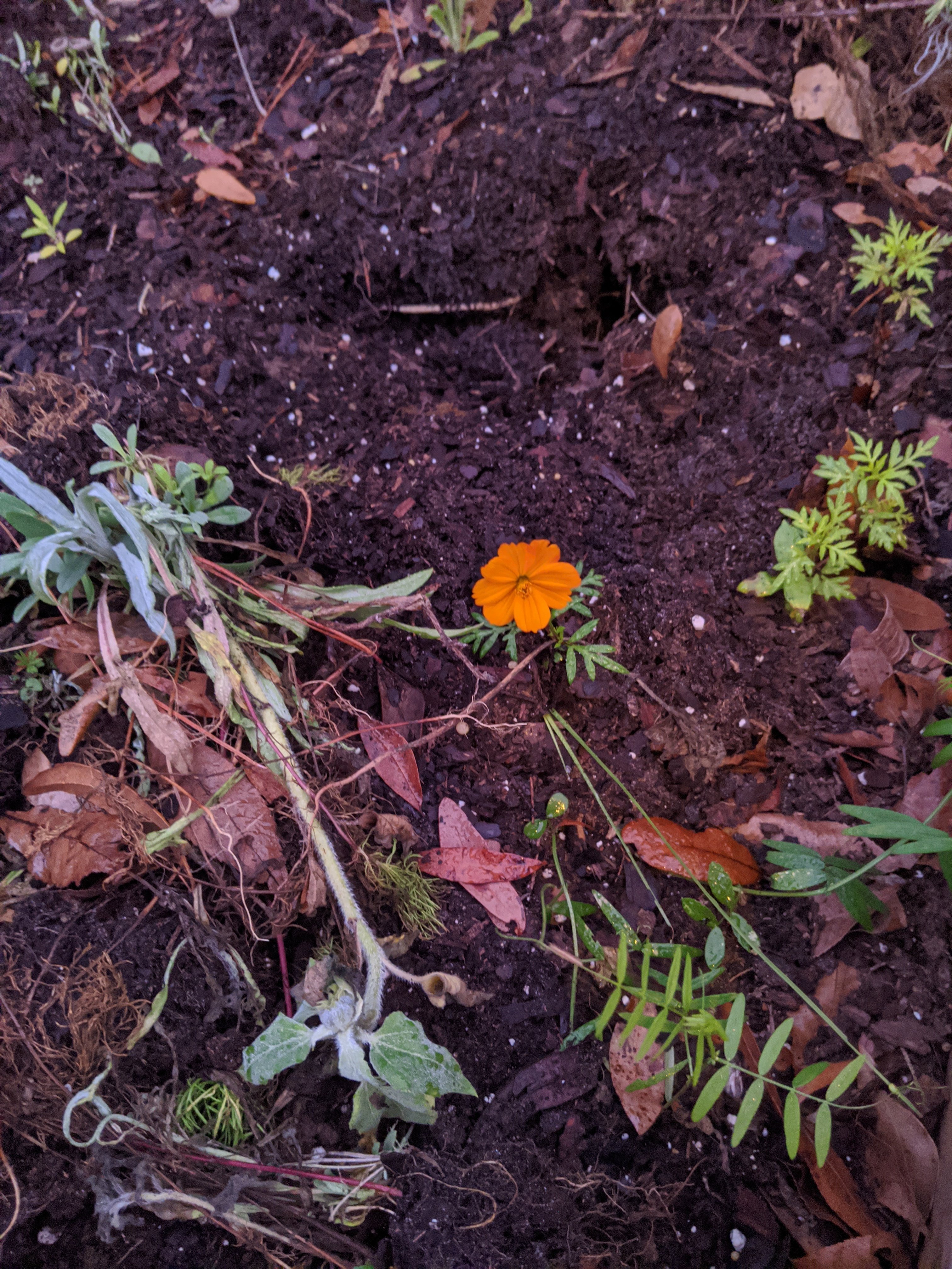 This little Cosmo popped up this week. The weather has been crazy which has making the flowers crazy. But what a little magic and joy to see this in the middle of January.