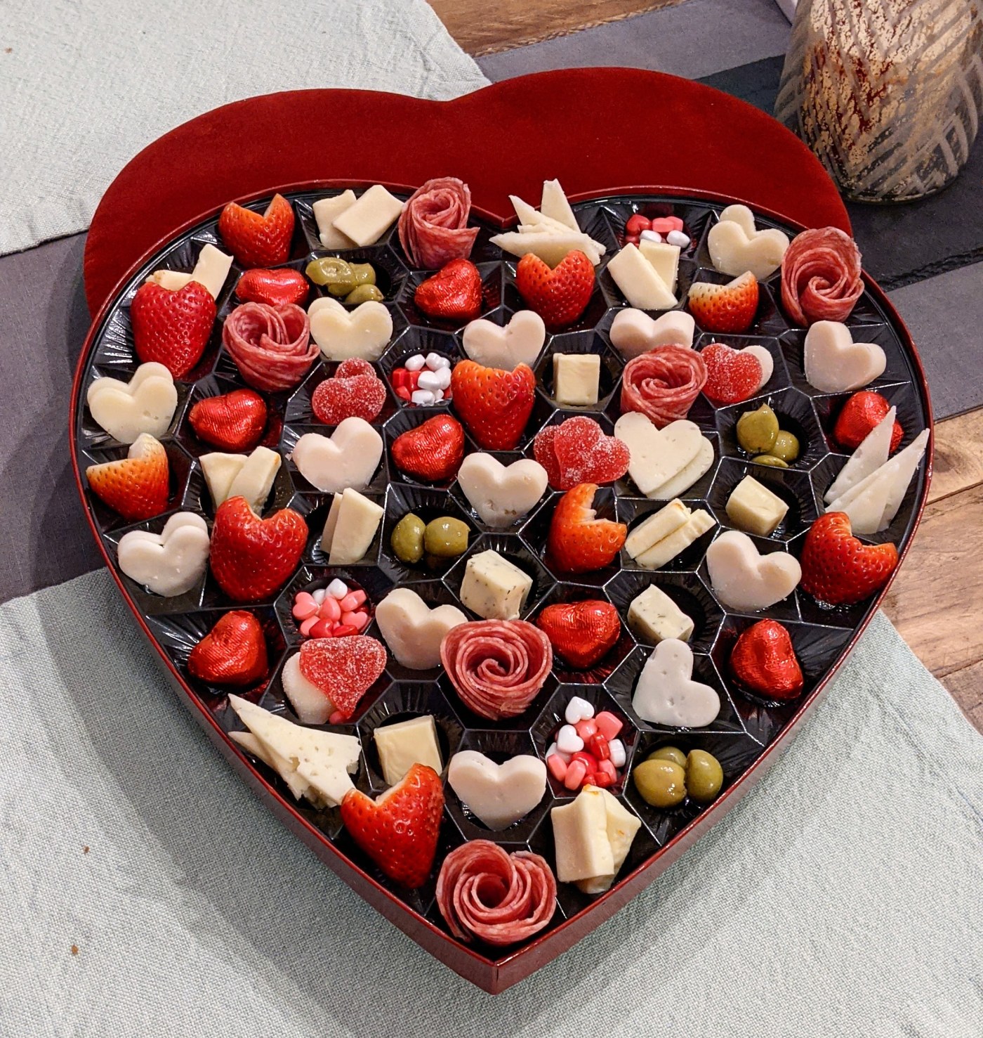 I celebrated Valentine’s with two of my besties. Of course that called for a heart themed charcuterie board. Aren’t these fun?!? I saw the inspiration on Instagram and knew I had to make my own version.