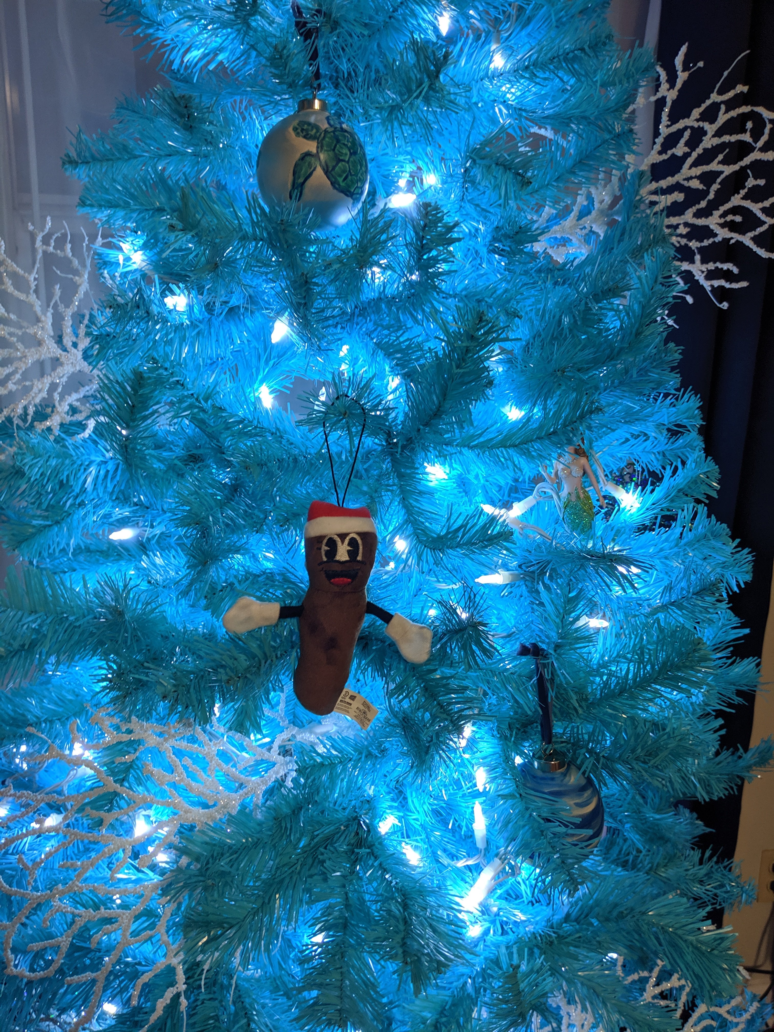 Ryan decided to make an addition to the ocean tree. I will be relocating Me Hanky the Christmas Poo to the side of the other tree once we get it…